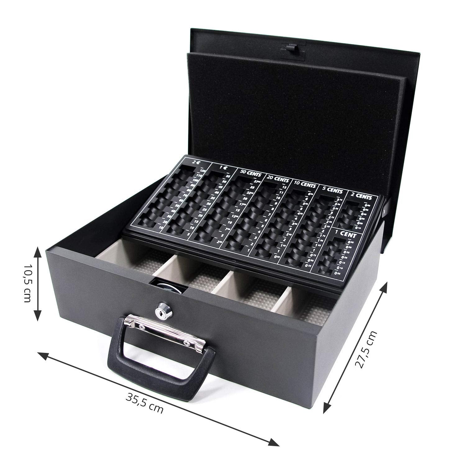 Stabile Geldkassette-Safe aus Stahl inkl. Euro-Münzbrett: Abschließbar