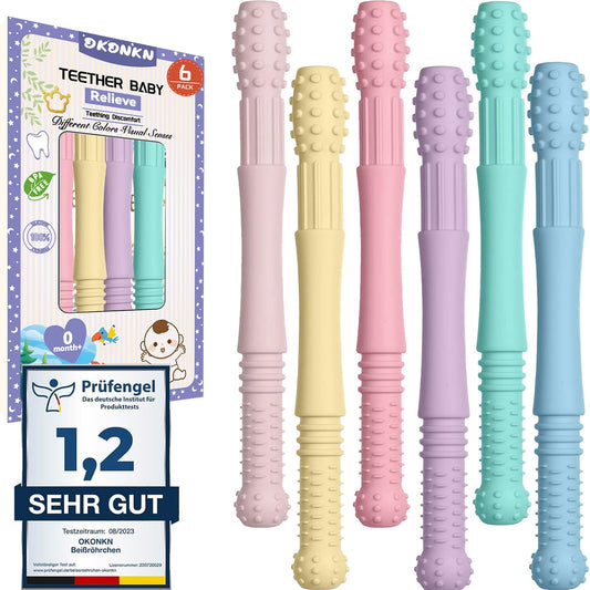 OKONKN Beißröhrchen (6 Stück): Zahnungshilfe aus Silikon - BPA-frei & kühlbar