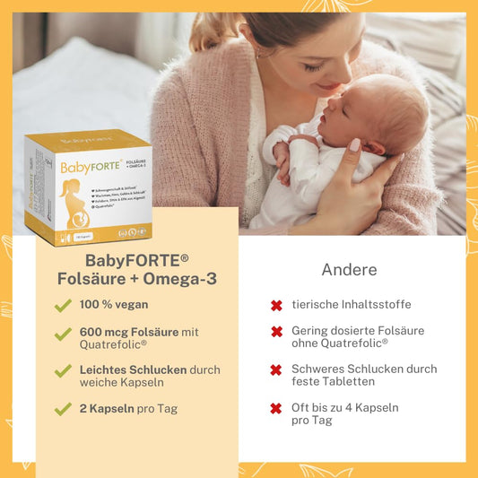 BabyFORTE Schwangerschafts-Vitamine | 180 vegane Kapseln mit Folsäure, DHA, EPA, Jod & Co