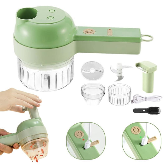 4-in-1 Wireless Elektrischer Gemüseschneider mit USB-Aufladung | Zerkleinern, Schneiden, Mixen und Schälen