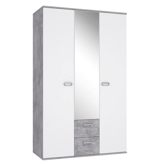 Wardrobe 'EMILY' with concrete look and mirror: light grey with white (Model: EMLS95-C251)