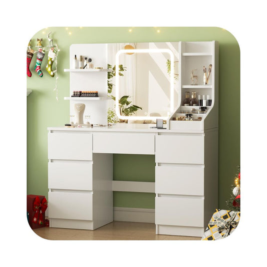 TRIUMPHKEY dressing table with LED lighting | 7 drawers, touch mirror