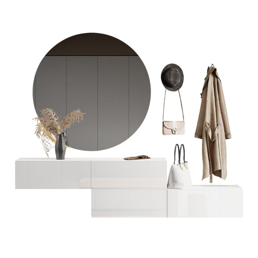 Planetmöbel hallway wardrobe (2x160cm) including round mirror with lighting (100cm) in white