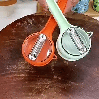 Set of 2 Double-Sided Multifunctional Fruit & Vegetable Peelers with Storage Box (Green & Orange)