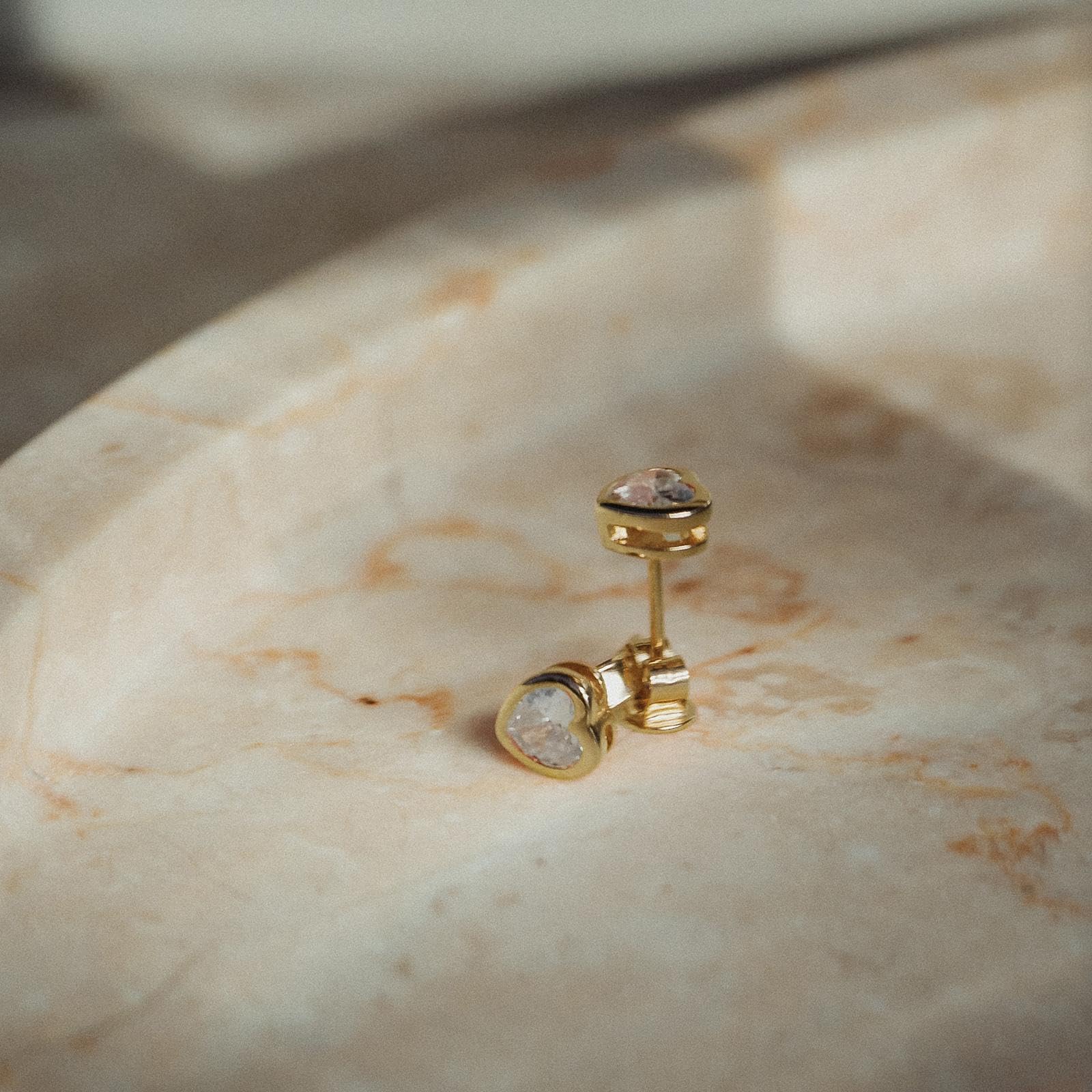 Gold-plated 925 Sterling Silver : Heart necklace & earrings with sparkling zirconia - nickel-free & rhodium-plated for long-lasting shine
