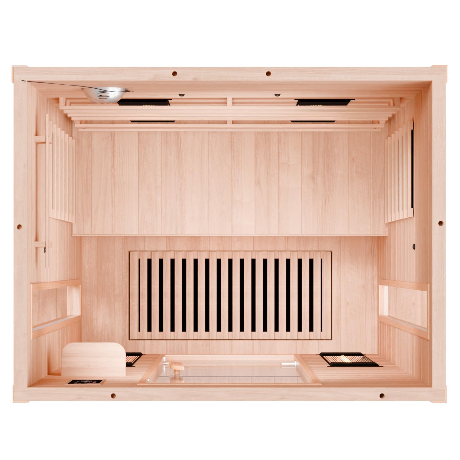 5 full spectrum radiators + 3 carbon radiators (side & in the floor) for targeted deep heat. -