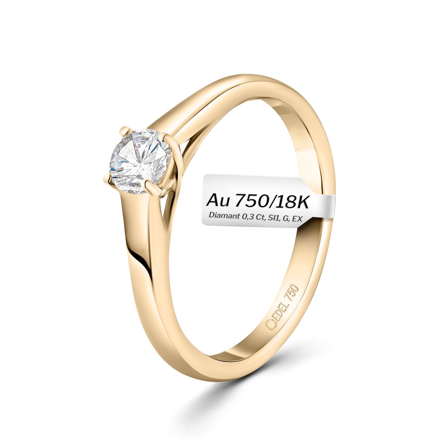 EDELIND engagement ring for women (750 gold) with genuine diamond 0.3ct (GIA) including gift box