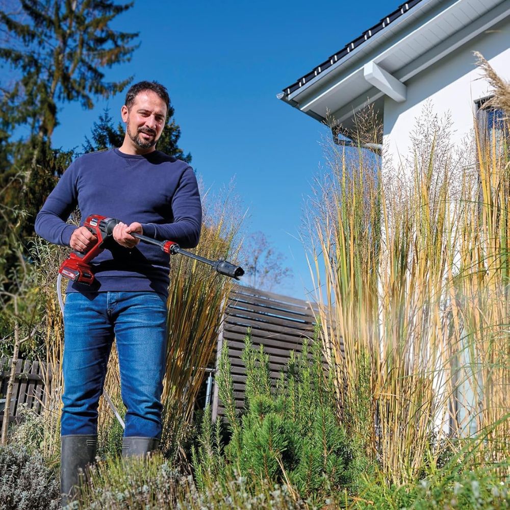 The Einhell HYPRESSO 18/24-1 is a versatile cordless pressure washer from the Power X-Change series – ideal for patios, gardens, cars, or camping. With up to 24 bar pressure and a flow rate of 240 l/h, it effortlessly cleans larger areas.