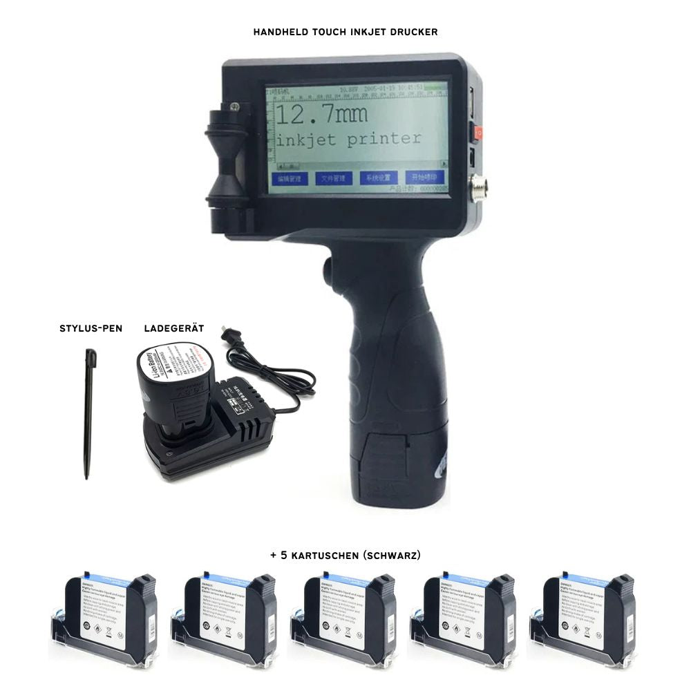 Handheld Touch Inkjet Printer (4.3 inch) incl. 5 cartridges | 2-12.7mm print height, 600 DPI, 2800mAh