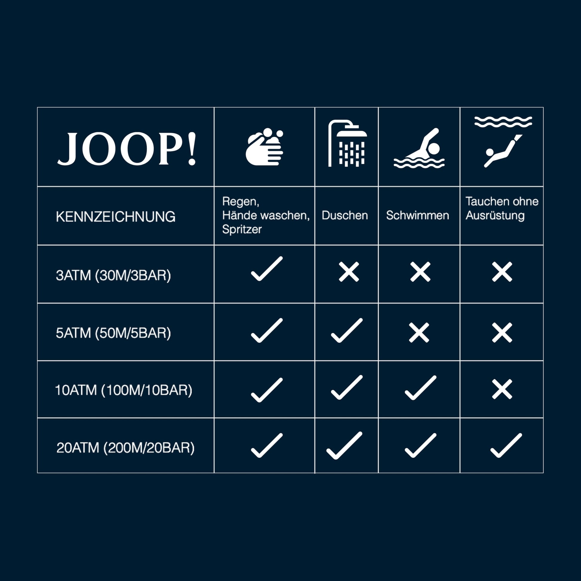 - Water resistance up to 5 bar - suitable for showering and swimming