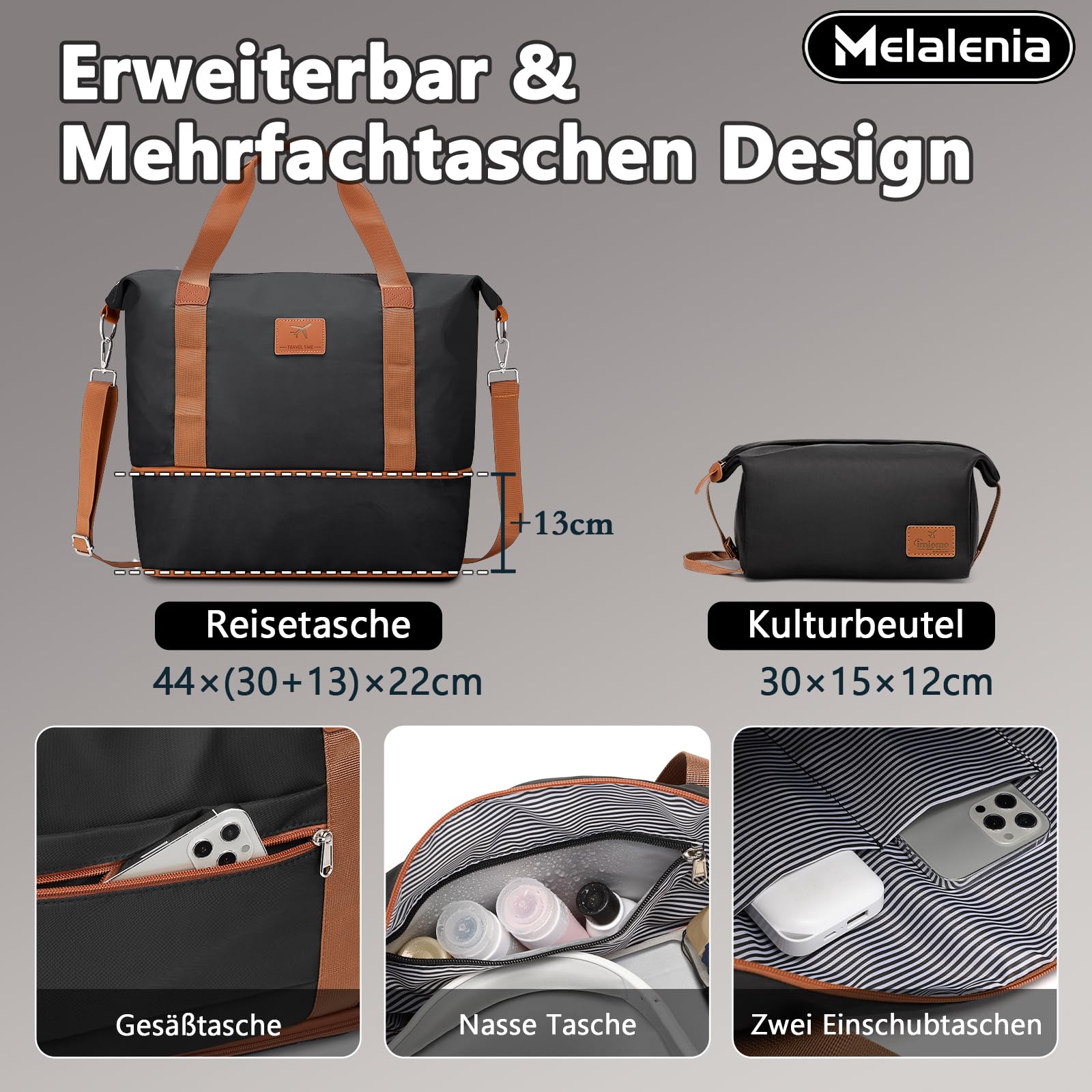 Set contents: cosmetic case (30cm), cabin suitcase (46cm), hand luggage (53cm), medium suitcase (63cm), large suitcase (73cm), expandable travel bag, toiletry bag
