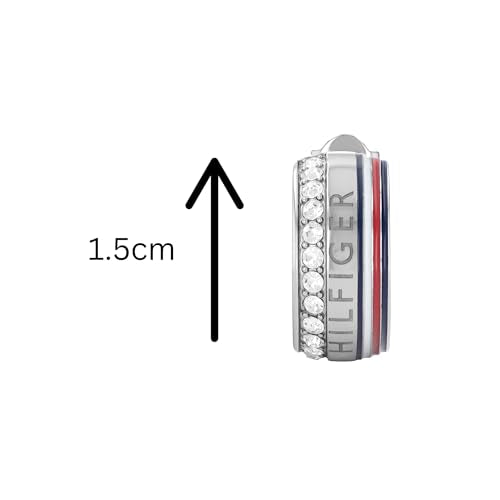 These silver-tone stainless steel stud earrings are 15mm long and adorned with sparkling crystals . The butterfly clasp ensures a secure fit. A modern design by Tommy Hilfiger, ideal for any occasion.