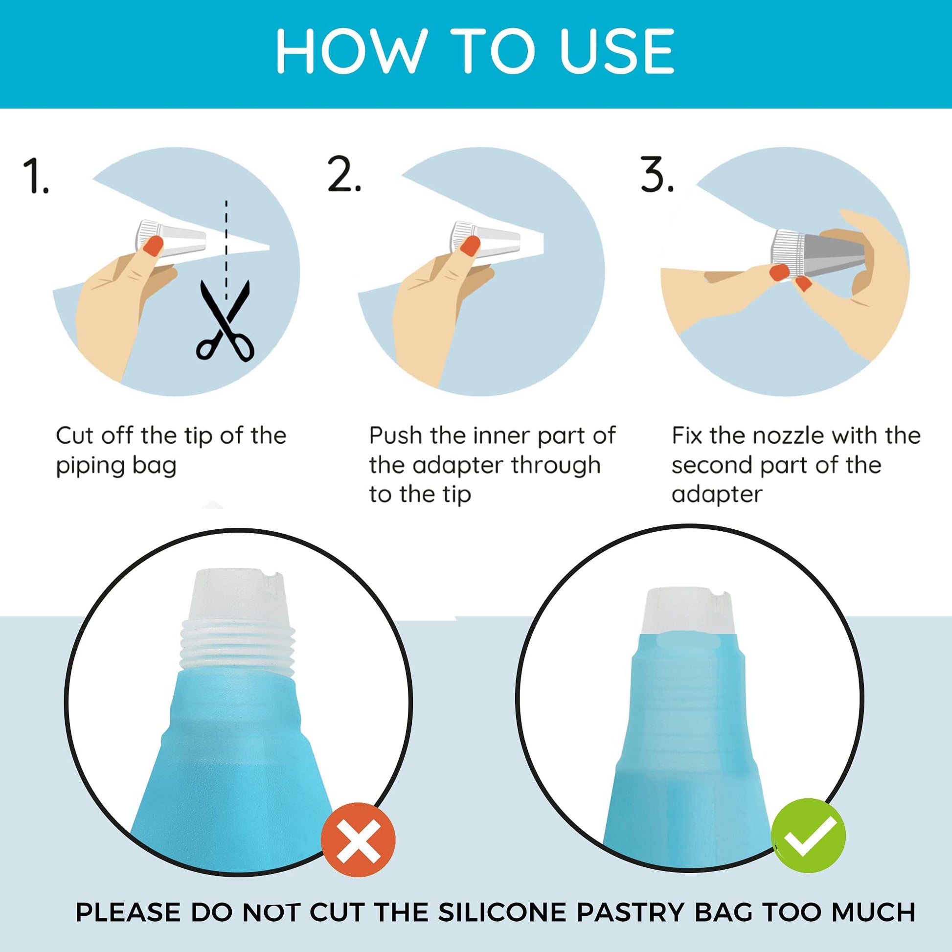 Assorted nozzles : The set contains 25 numbered piping nozzles in various styles, including classic, large, ball, Russian and ruffle nozzles - ideal for roses, leaves, stars and lettering