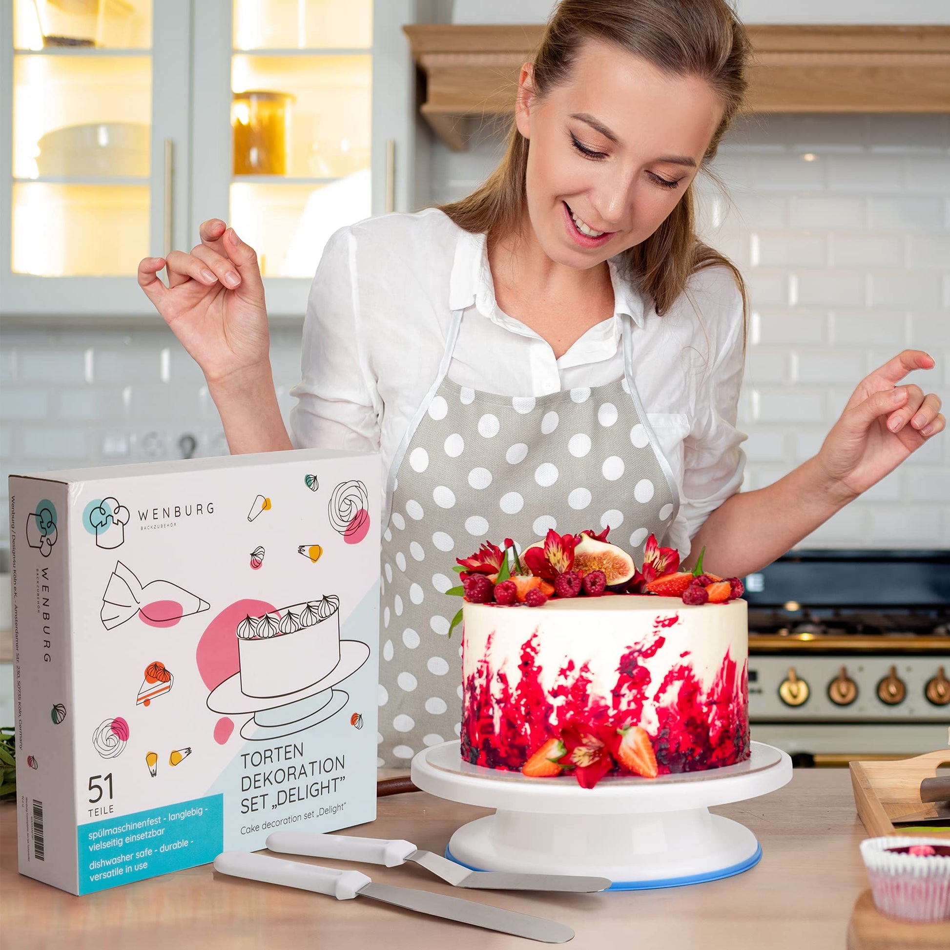 Versatile set : 51-piece cake set with a 360° rotating cake plate , ideal for precise decorating