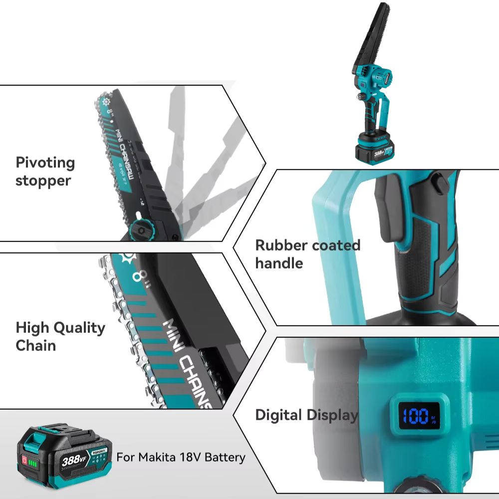 Experience powerful and efficient cuts with the YOFIDRA 8" cordless chainsaw !