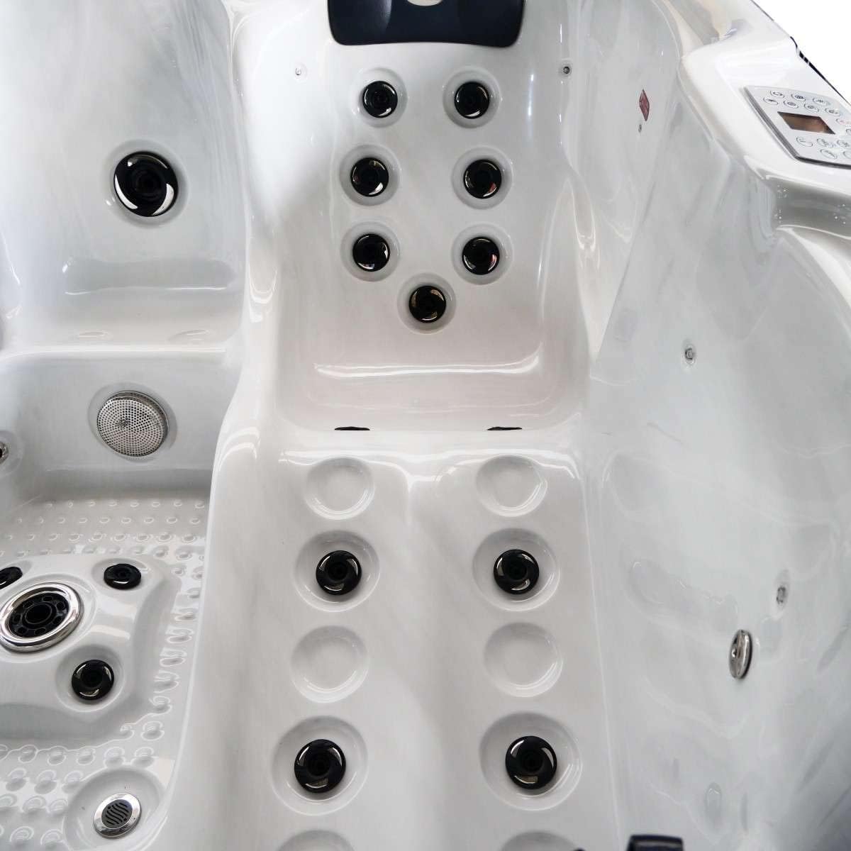 Outdoor-Whirlpool OASIS MAXI mit Abdeckung & Steige: 52-Massagedüsen, LED, Lautsprecher, Bluetooth