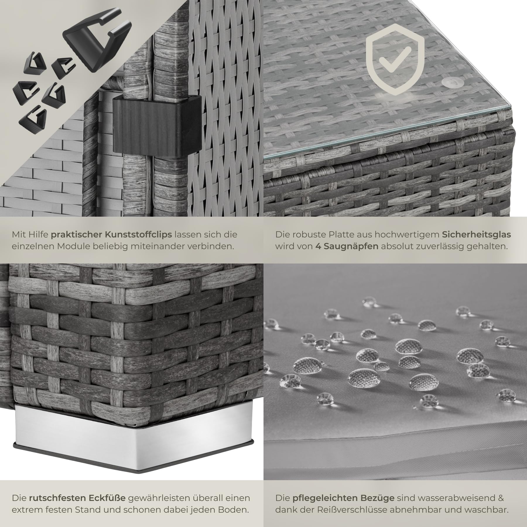 Diese moderne Loungeinsel passt sich Deinem Außenbereich perfekt an - ob Balkon, Terrasse oder Wintergarten. 5 individuell kombinierbare Module sorgen für maximale Gestaltungsfreiheit.