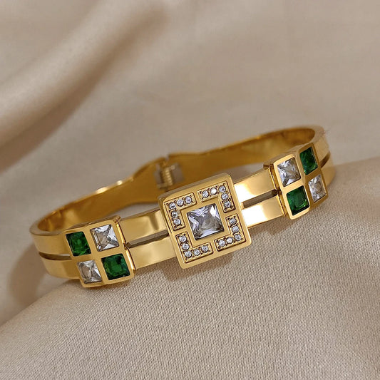 Bracelet de luxe en acier inoxydable vert émeraude imperméable avec zircone cubique | Bracelet à breloques italien