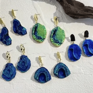 Boucles d'oreilles vintage inspirées de Van Gogh avec pierre naturelle simulée et roche de lave