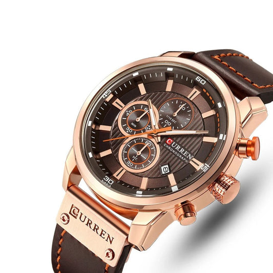 Montre à quartz chronographe de luxe CURREN pour homme avec bracelet en cuir