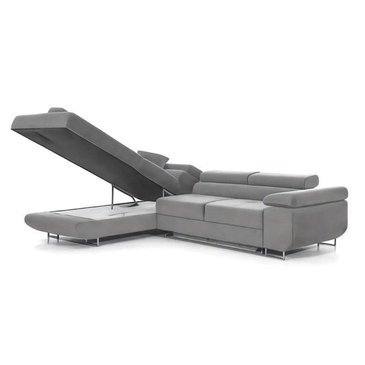 3-Sitzer L-Form Ecksofa mit Schlaffunktion 'PASTI' Eckcouch für Wohnzimmer (Hellgrau, Ottomane Links)