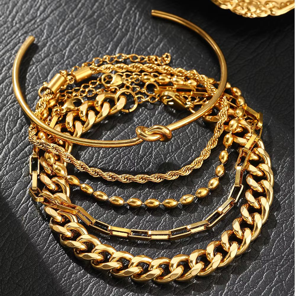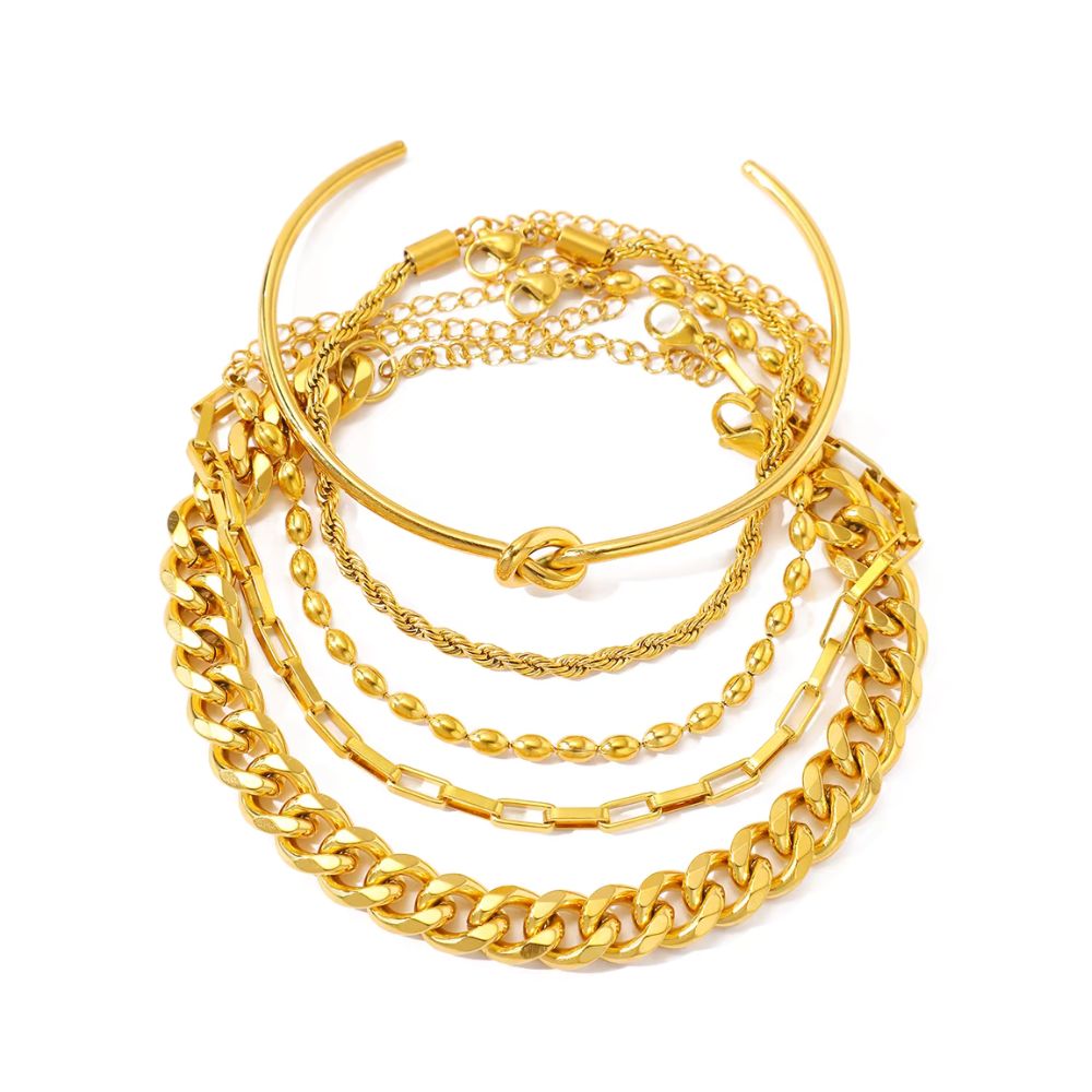 Ensemble de bracelets à la mode en acier inoxydable | Cadeau de bijoux de luxe pour femmes (or)