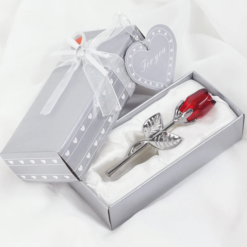 Rose en verre de cristal dans un écrin | Cadeau de fin d'année parfait pour la famille, la femme, etc.