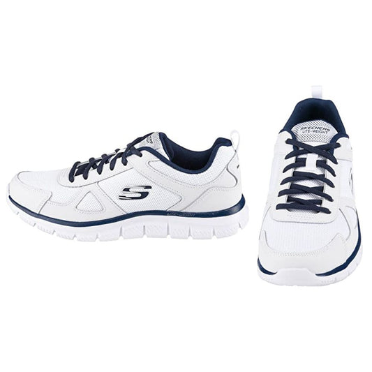 Skechers Track Scloric Herren-Sneaker: White Leather Mesh Pu Navy Trim