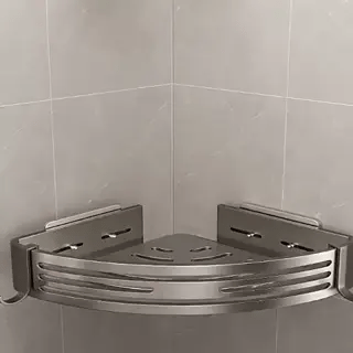 Elegante Eck-Duschablage mit Haken und Stange | Bohrfrei für Shampoo und Badzubehör