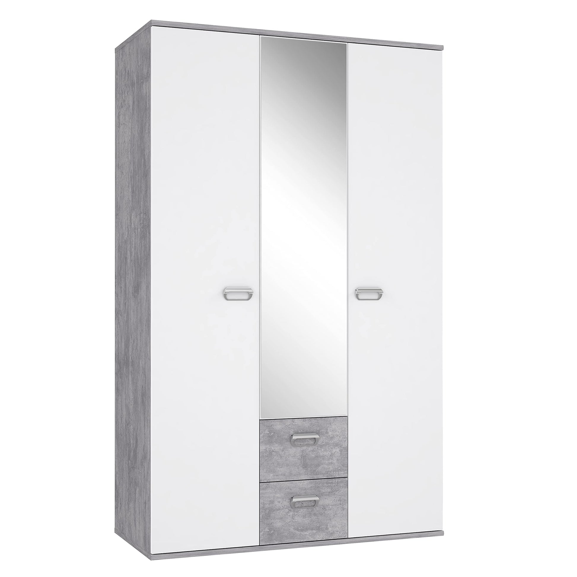 Kleiderschrank 'EMILY' mit Betonoptik und Spiegel: Lichtgrau mit Weiß (Modell: EMLS95-C251)
