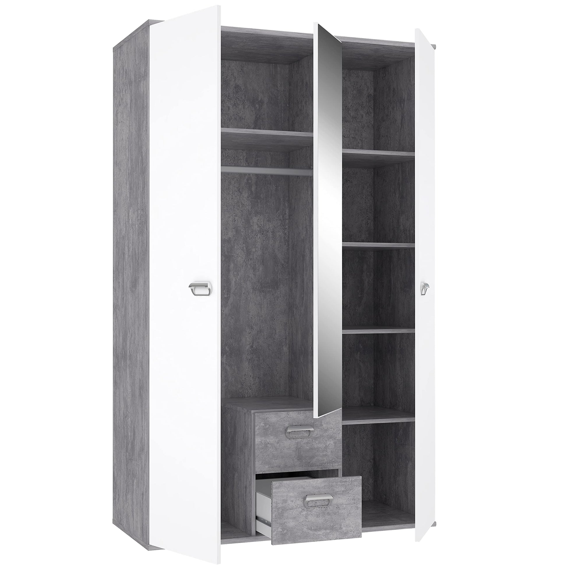 Der Kleiderschrank 'EMILY' in Betonoptik/Lichtgrau kombiniert mit Weiß bietet viel Stauraum bei moderner Optik. Ideal für Schlafzimmer, Gästezimmer oder Flur.