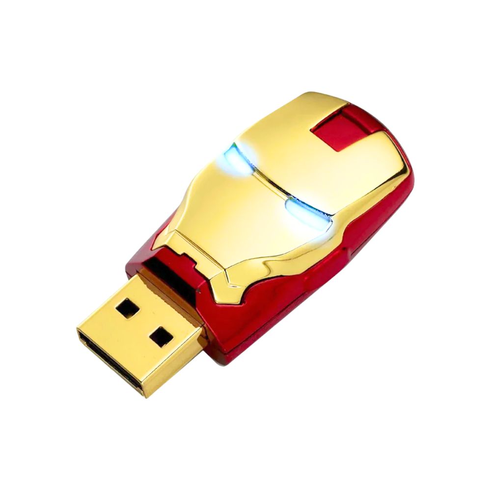 Iron Man Mask USB 2.0 Flash Drive 64GB aus Metall mit LED-Leuchtaugen, Wasserdicht, Geschenkidee