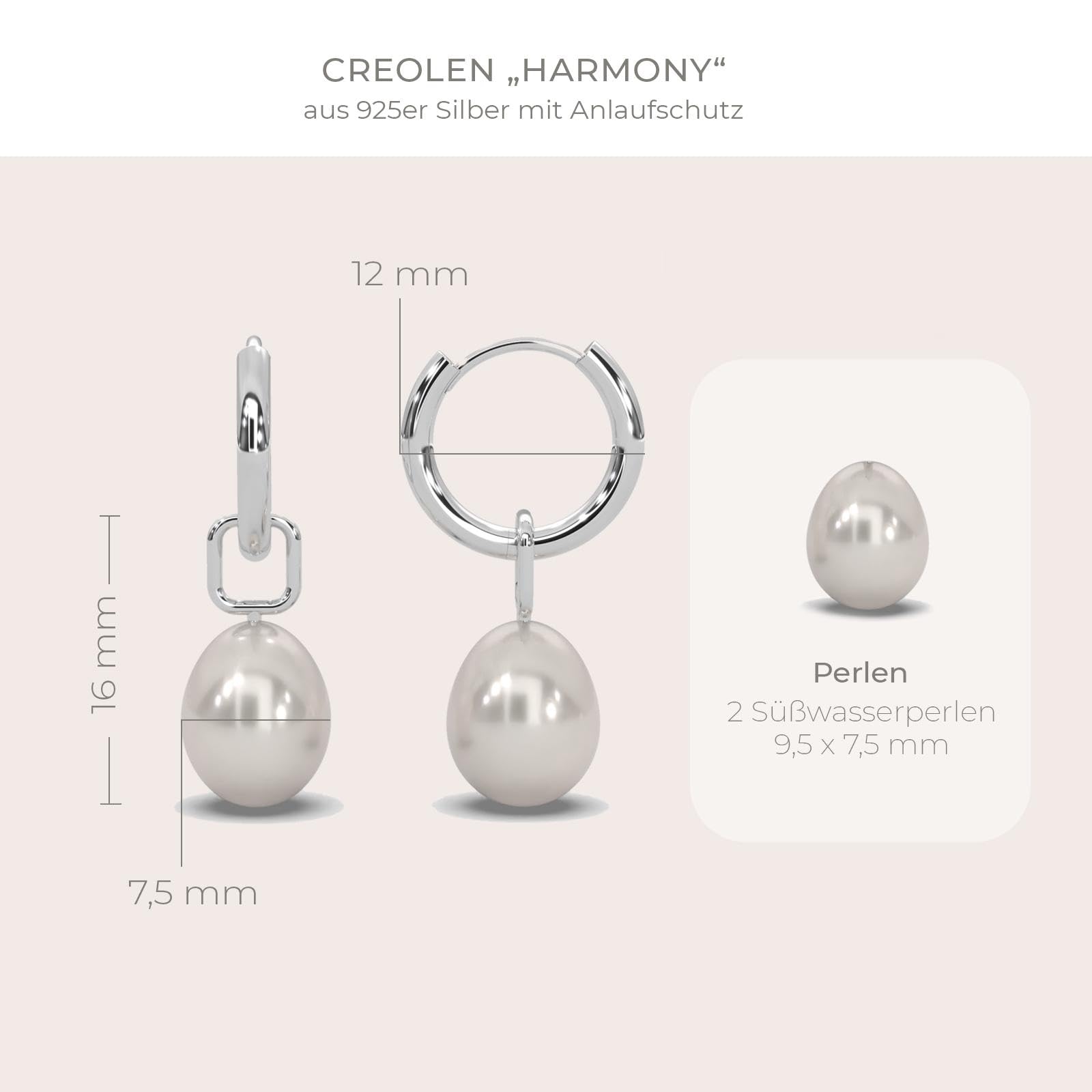 AMOONIC Creolen Hoops Perlenohrringe Damen (Silber 925) mit Süßwasserperlen in Tropfenform