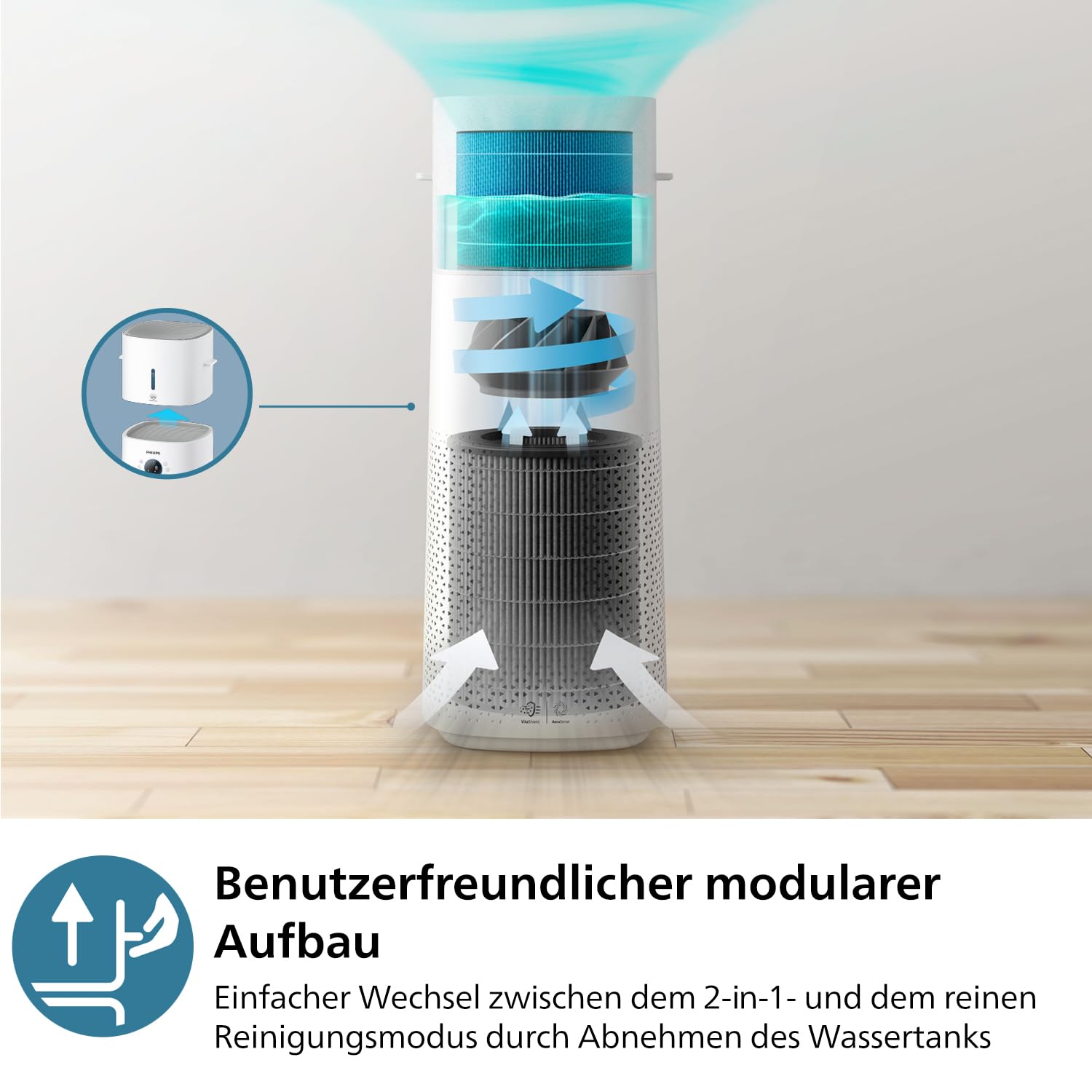 Philips 3000 Series 2-in-1-Kombigerät für Luftreinigung und -befeuchtung: NanoProtect HEPA- und Aktivkohlefilter