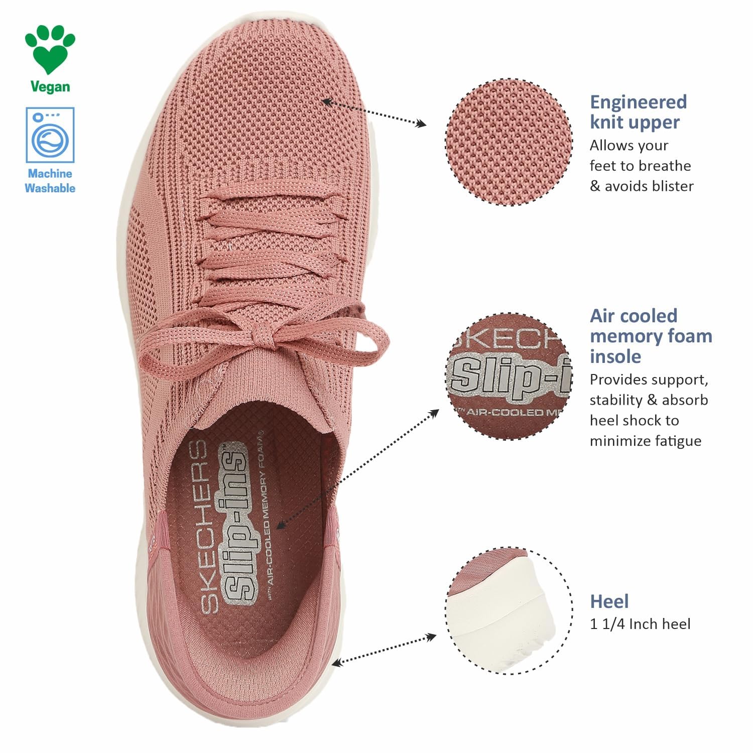 Skechers 'Ultra Flex 3.0 Brilliant Path' Damen Sneaker (Mauve Knit/Pink Trim)