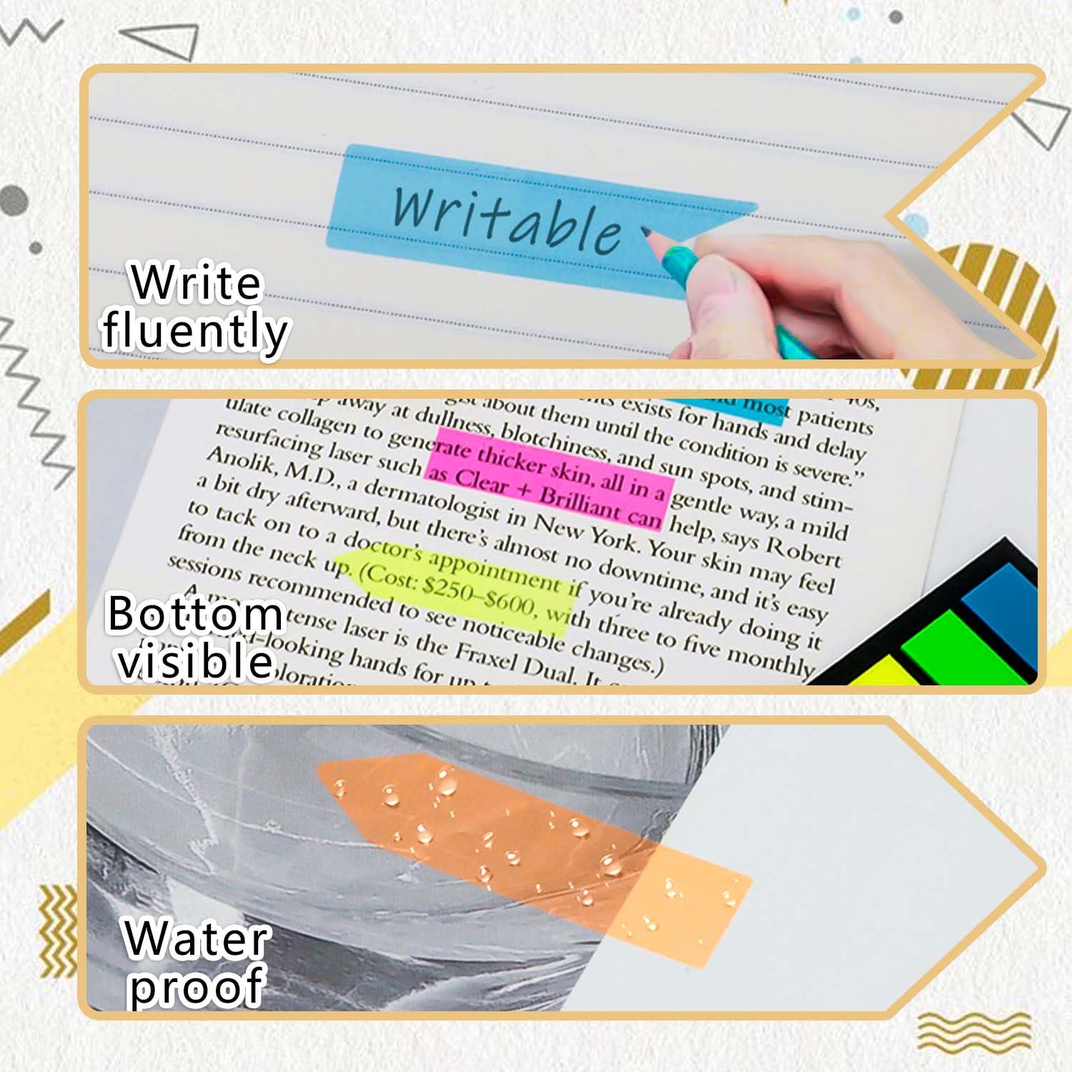 Sticky-Notes Haftstreifen (1200 Stück): Seitenmarker - 3 Designs, 8 Farben