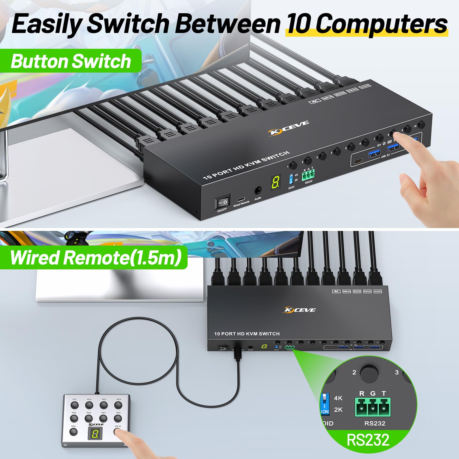 MLEEDA 10-Port HDMI KVM Switch: Professionelle Kontrolle für mehrere PCs mit nur einem Monitor