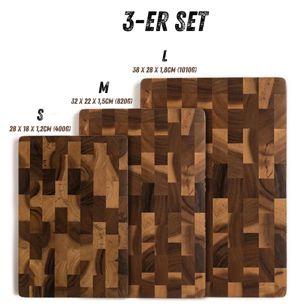 3er-Set doppelseitiges Schneidebrett aus Akazienholz | Premium Küchenbrett, Wasserabweisend