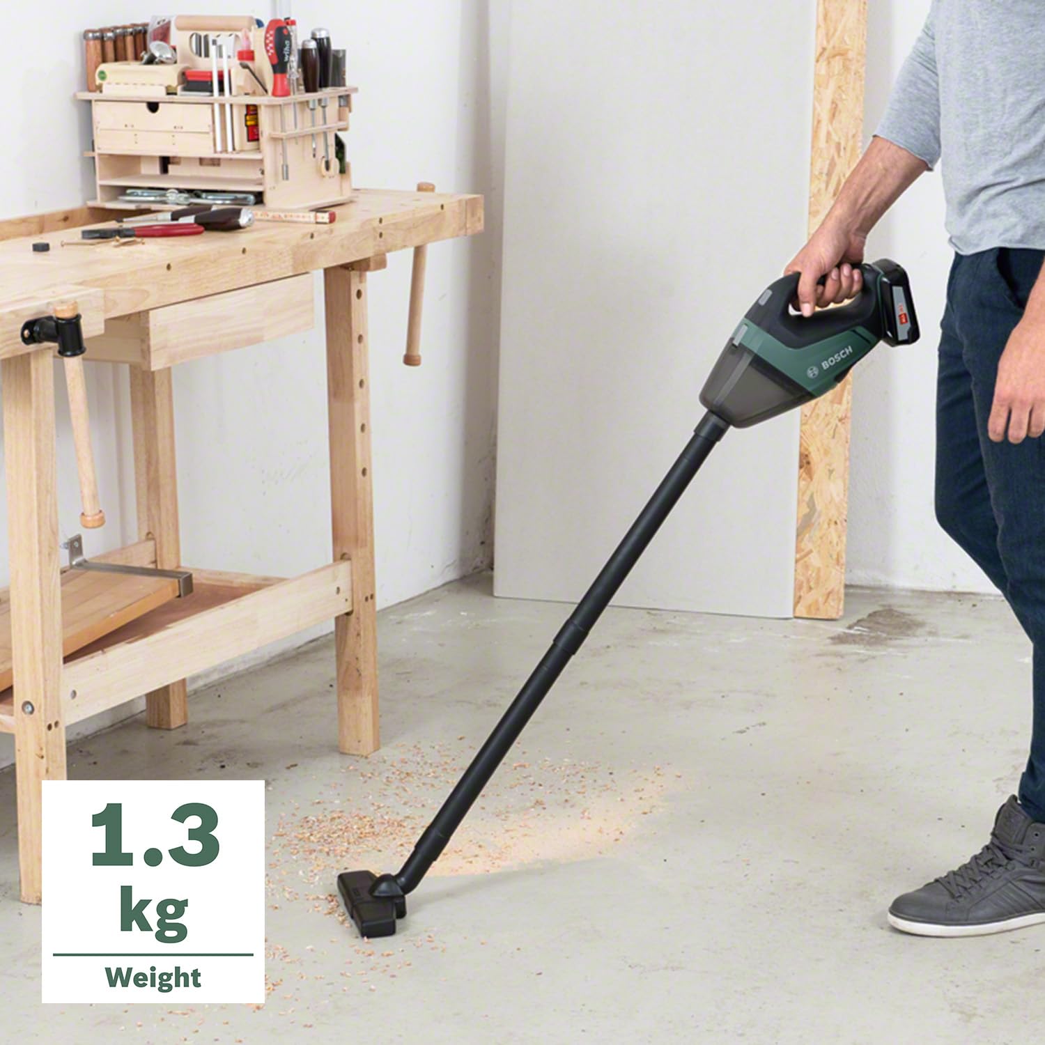 Der Bosch UniversalVac 18 ist ein kraftvoller Akku-Handstaubsauger für Haus, Auto und Garten. Mit umfangreichem Zubehör und starkem 18V-System eignet er sich für verschiedenste Reinigungsaufgaben - von Böden über Polster bis hin zu engen Zwischenräumen.