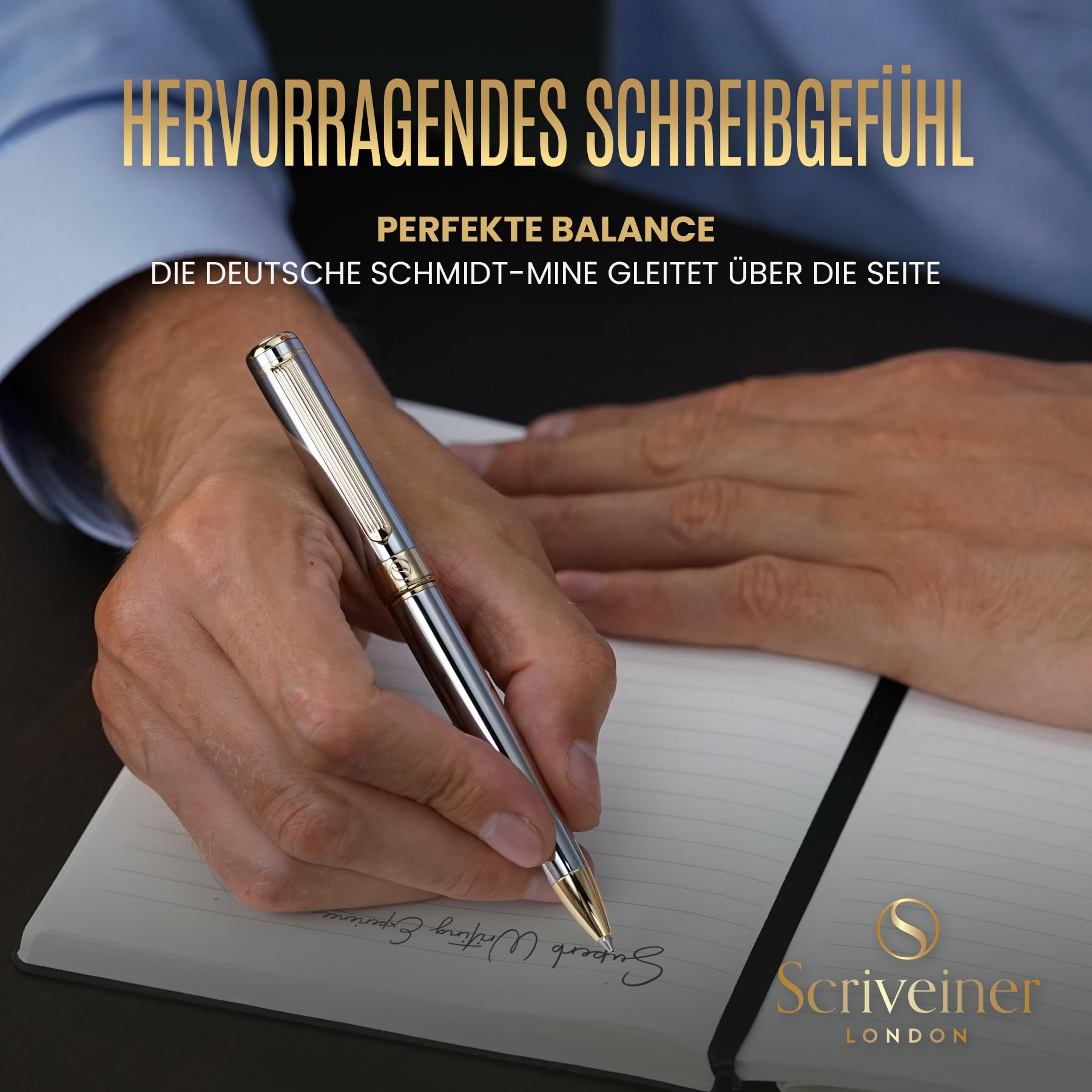 Scriveiner Kugelschreiber Hochwertiger Design Kugelschreiber in Silber mit Echtvergoldung, schwarze Schmidt Ersatzmine, Geschenkbok, Büro set, Professionelle Kugelschreiber