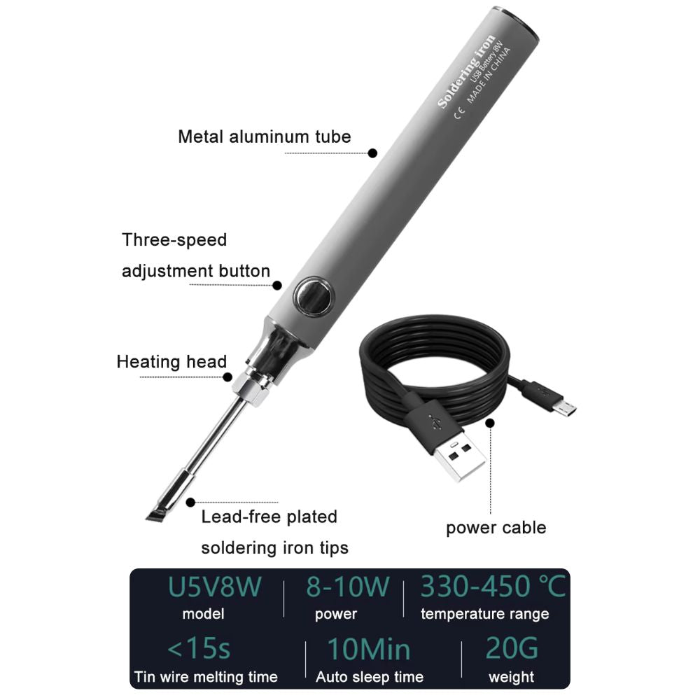 Wireless USB-Lötgerät (8-10W) mit Schnellladefunktion | Tragbar, Lithium-Akku, OVP