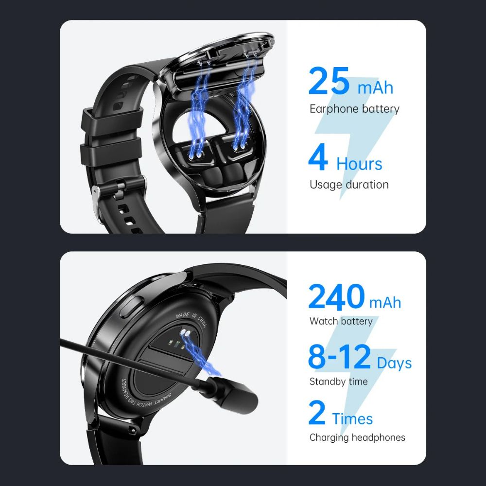 Die X10 vereint die Funktionalität einer Smartwatch mit drahtlosen TWS Bluetooth-Kopfhörern, die direkt im Uhrengehäuse aufbewahrt und aufgeladen werden können. So sind Sie immer bereit für Ihre Anrufe, Ihre Musik und Ihr Training - ganz ohne zusätzlichen Aufwand.