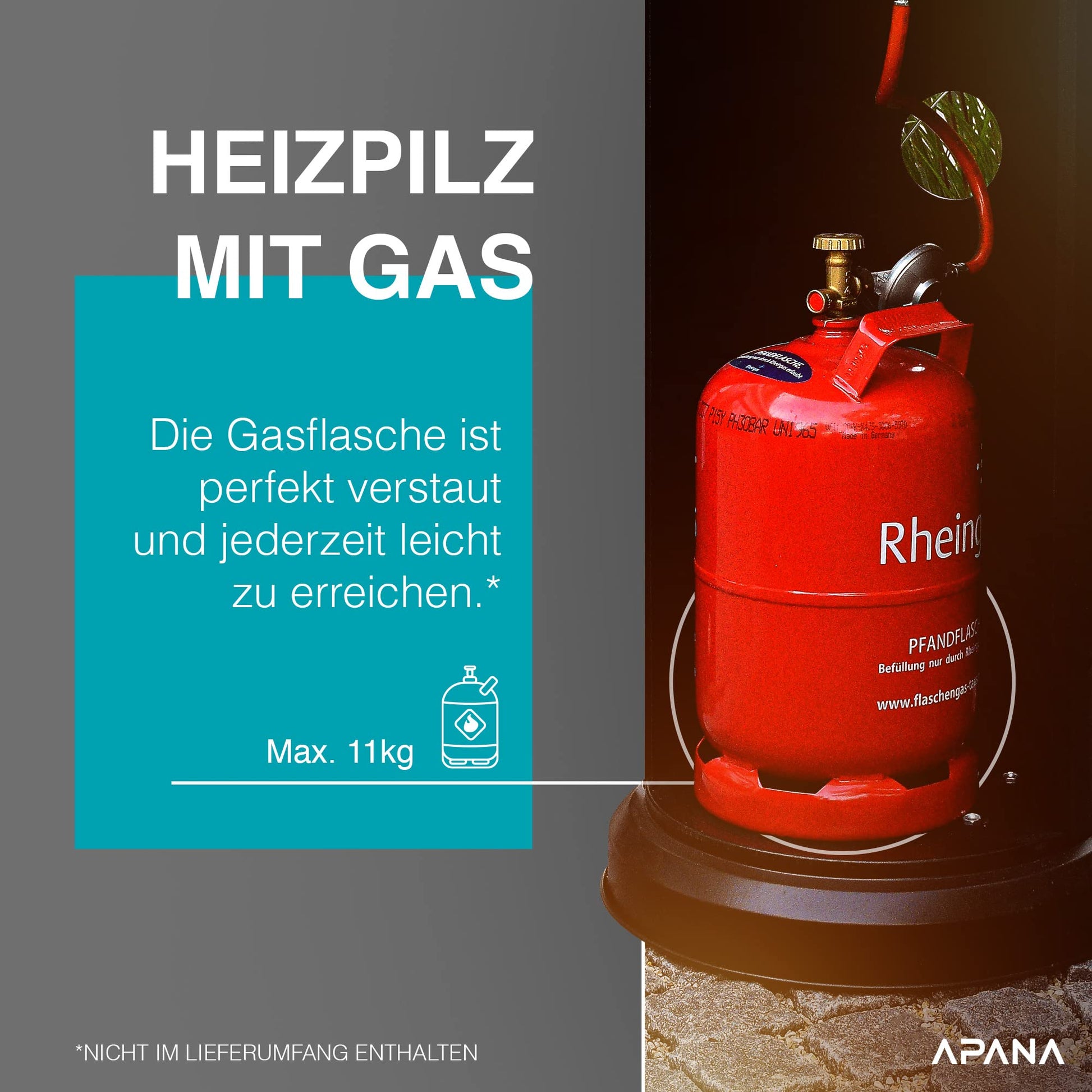 APANA 'Bellamente ONE' Gasheizstrahler (14kW) für Garten mit Transportrollen & Abschaltautomatik
