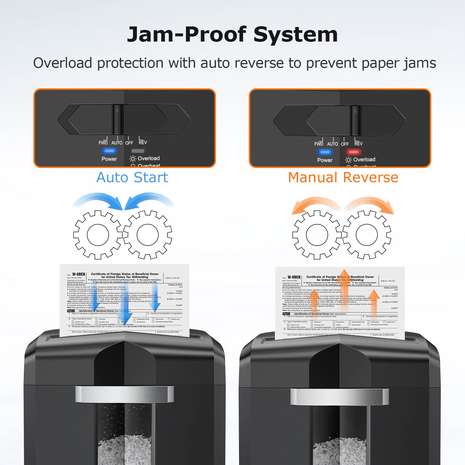 • [ Auto Start & Reverse ] Auto Start/Stopp und manueller Zurücklauffunktion schützen Sie vor der Frustration von Papierstaus; Mit Überhitzungsschutz und automatischer Stoppfunktion bei zu viel Papier