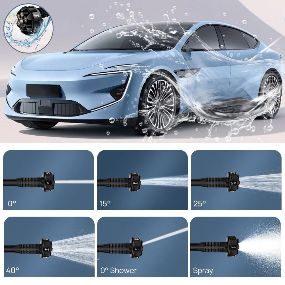 Die 6-in-1 verstellbare Düse bietet sechs verschiedene Modi (0°, 15°, 25°, 40°, Schaumstrahl, Duschmodus), sodass Sie die Reinigung individuell anpassen können. Ob Autowäsche, Gartenbewässerung oder hartnäckige Verschmutzungen - dieser Hochdruckreiniger ist vielseitig einsetzbar.