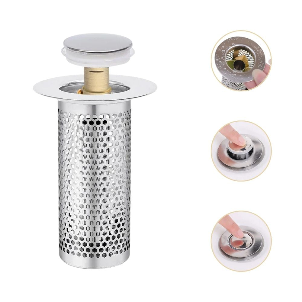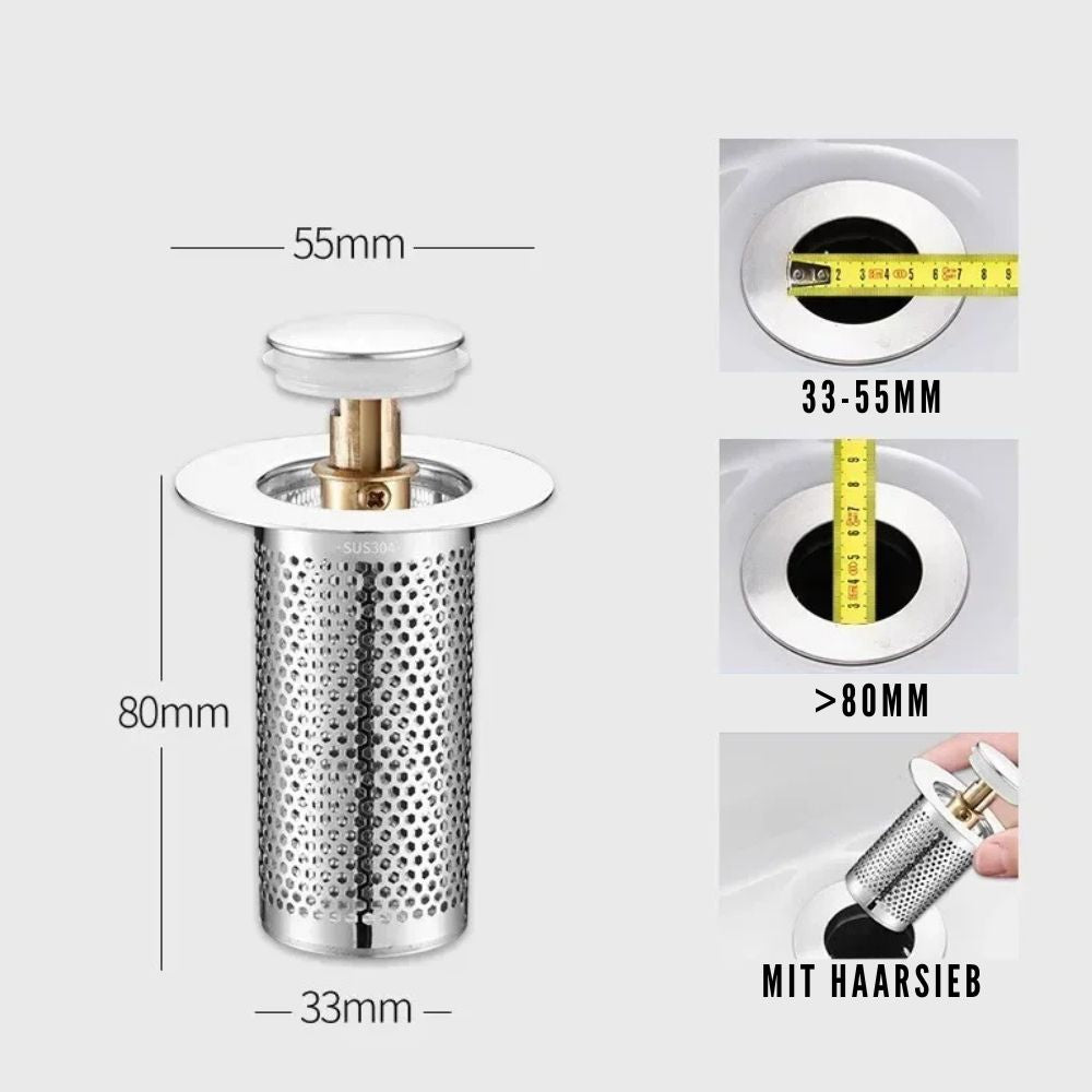 Edelstahl Pop-Up Ablaufstopfen mit Haarsieb | Anti-Verstopfungs Waschbeckenfilter (GIF2)