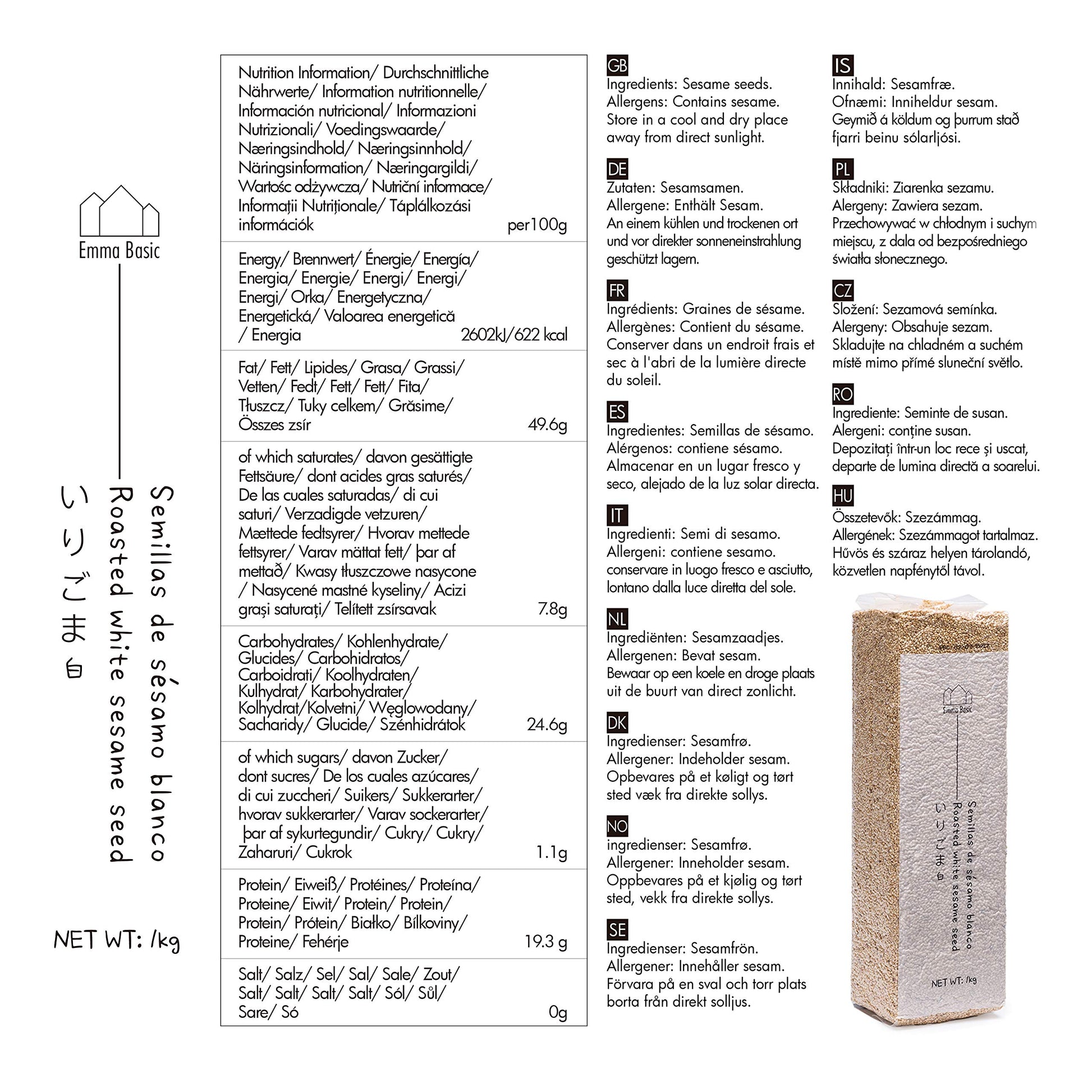 - Inhalt: 1kg geröstete weiße Sesamkörner