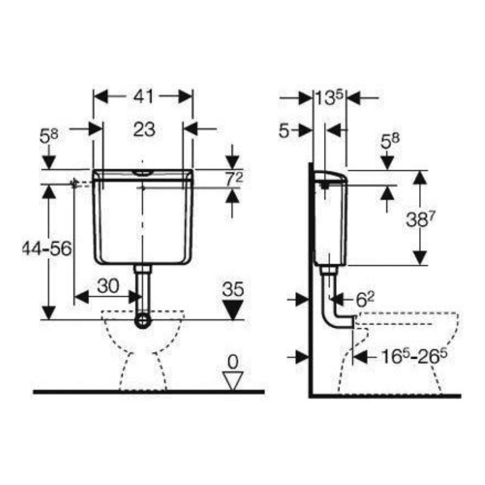 Geberit (AP110) langlebiger - geräuscharmer Aufputz-Spülkasten: Tiefhängend