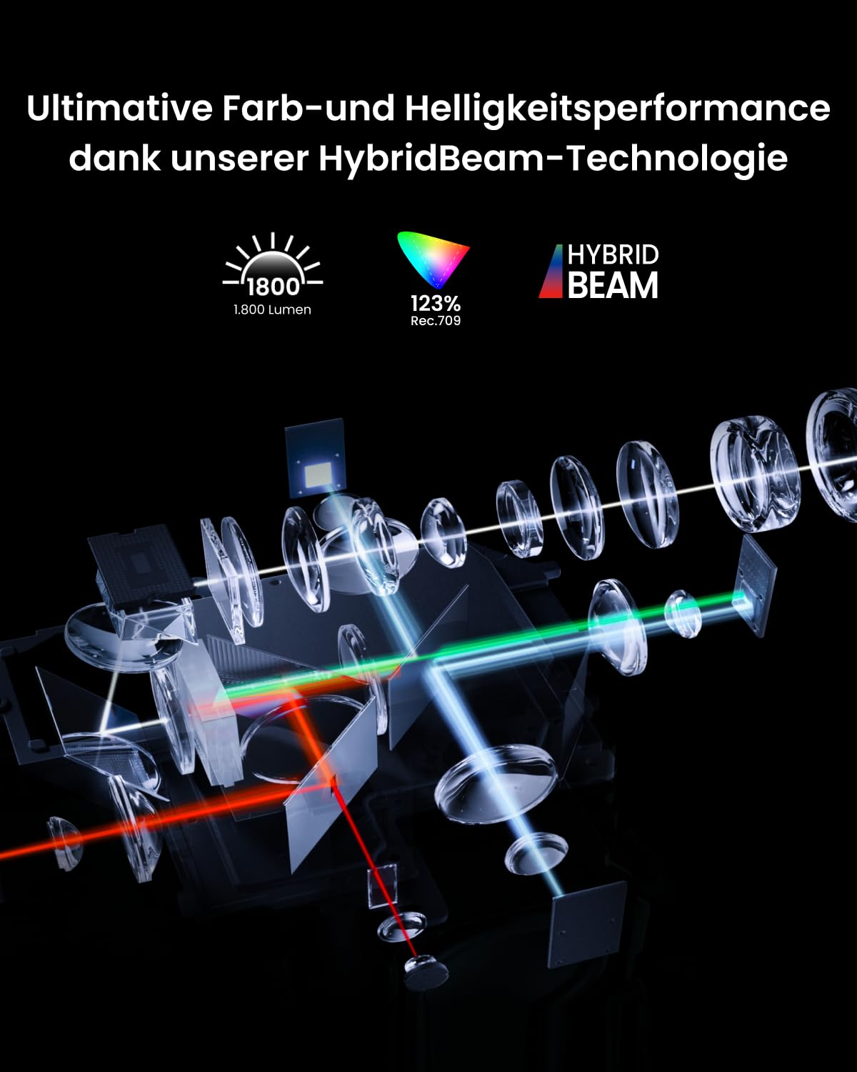 - HybridBeam-Technologie - 1.800 ANSI-Lumen durch Laser- und LED-Kombination