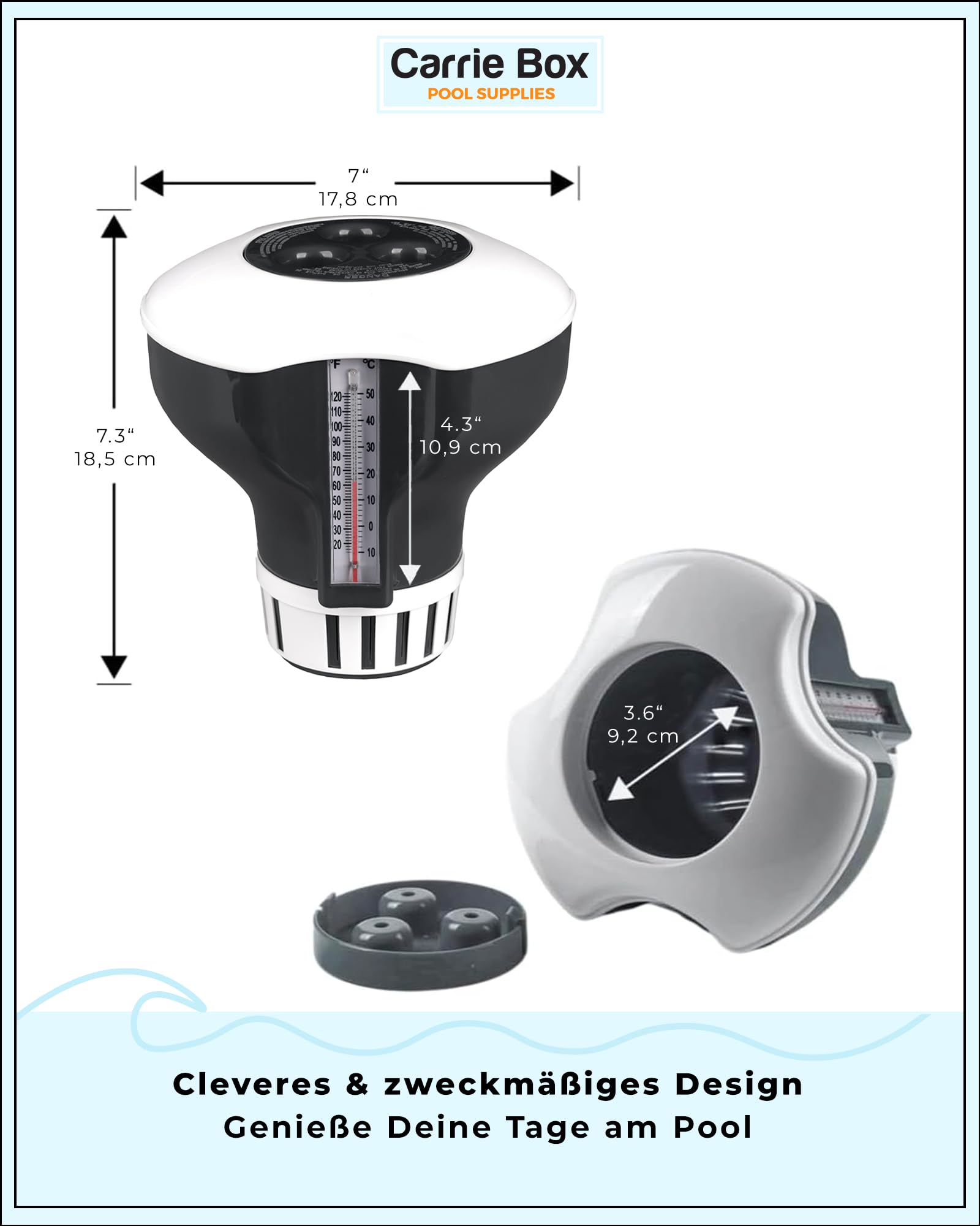 Carrie Box Dosierschwimmer inkl. Thermometer: Chlordosierer, Einstellbar, 20 bis 200g